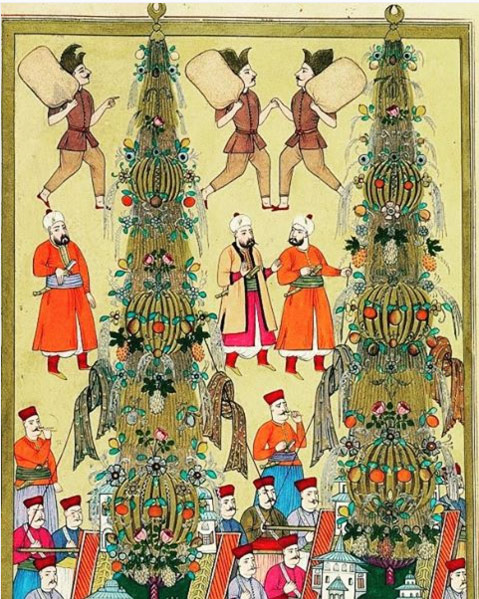 -(5) (Kaynak: Özdemir Nutku, “Nahil”, TDV İslam Ansiklopedisi,cilt: 32; s.300. Görsel: Surname-i Vehbi’den Levni’nin çizdiği bir nahl.)