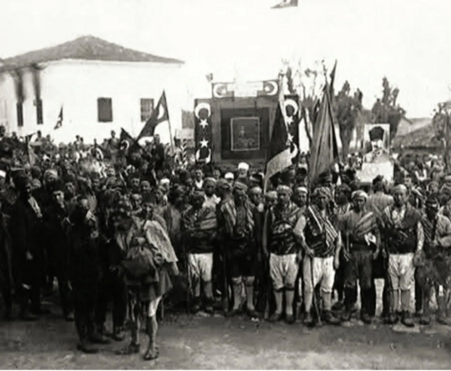 Kaynak: (Mustafa Kemal Paşa’yı Ankara’ya ilk gelişinde karşılayan Seymenler Taşhan önünde