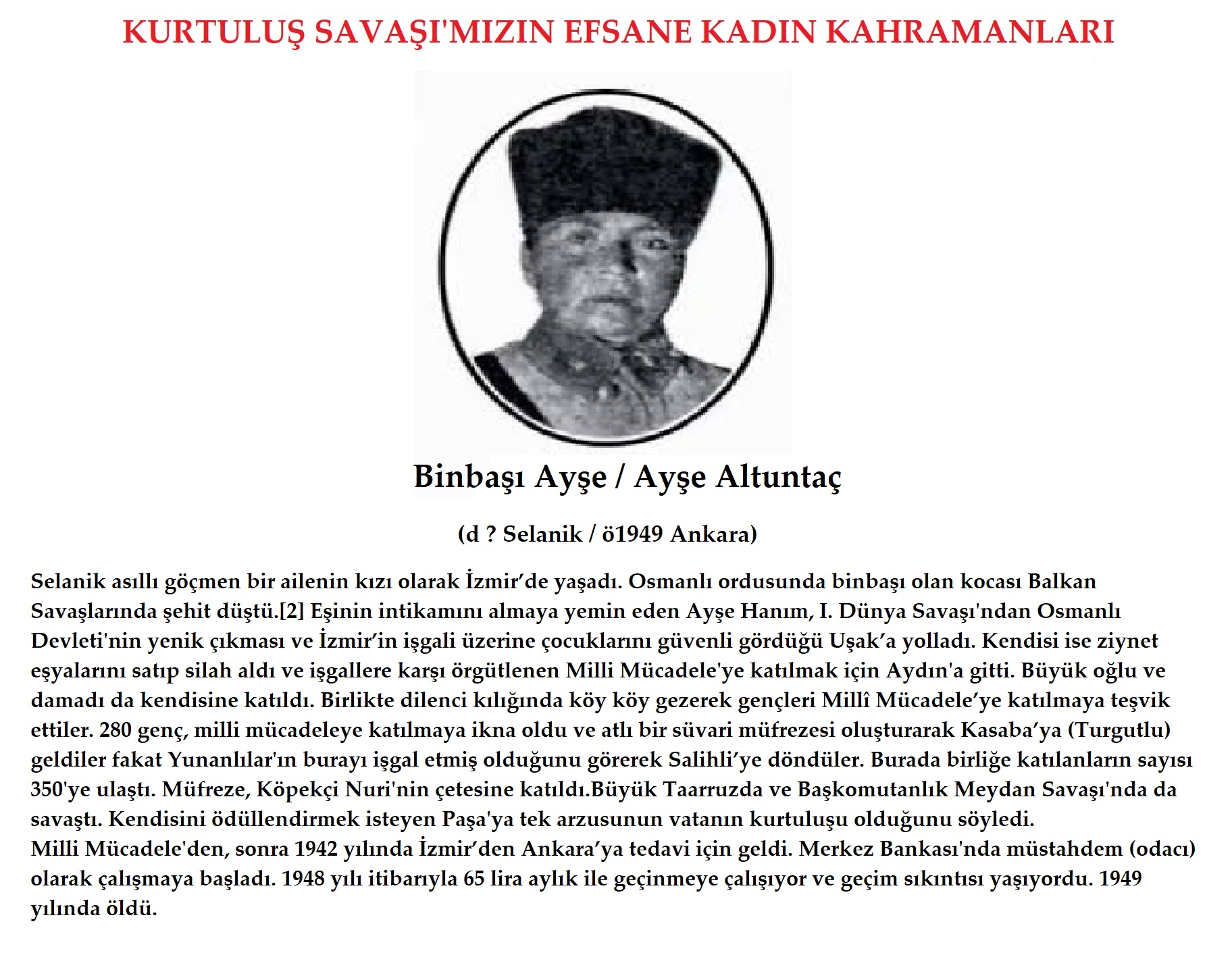 Binbaşı Ayşe /Ayşe Altuntaç, Türk kurtuluş mücadelesinin halk kahramanlarındandır.