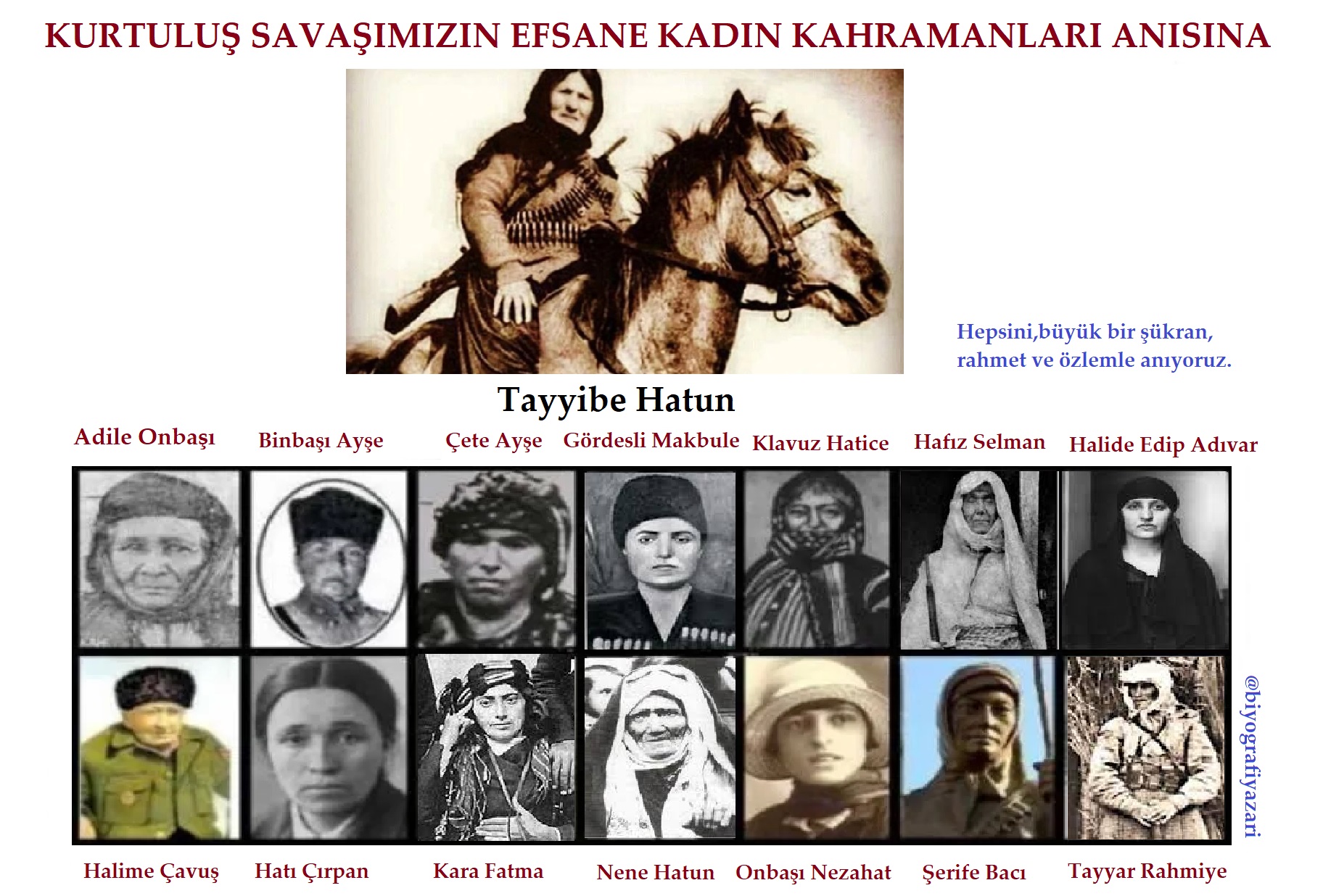 Türk milleti için dönüm noktası olan Milli Mücadele dönemi, kadın-erkek, genç-yaşlı demeden bir milletin topyekûn siper olduğu, tarihimize altın harflerle yazılmış önemli bir savaşlar silsilesidir. Yurdumuzu işgal eden düşman birliklerine karşı mücadele edenler arasında en önemli unsurlardan biri de Türk kadınları olmuştur. Türk kadınlarının cesurca verdiği mücadele, yıllar geçse de ders kitapları aracılığıyla genç nesillere aktarılmaya devam ediliyor. Bu yıl da ders kitaplarında öğrencilere araştırma konusu olarak verilen Milli Mücadele’nin kadın kahramanları ve onlar hakkında önemli bilgiler, Türk milletinin var olma savaşında yerlerini alarak cephelerde müdafaanın başarıyla sağlanmasına katkı sağlamıştır. Atatürk Araştırma Merkezi’nin Milli Mücadelenin kadın kahramanları hakkında derlediği bilgiler toplumun her kesimince paylaşılmalı ve kahraman Türk kadınlarının isimleri her hafızada ayrı ayrı yaşamalıdır. Bunun için hepimiz mücadele etmeliyiz.