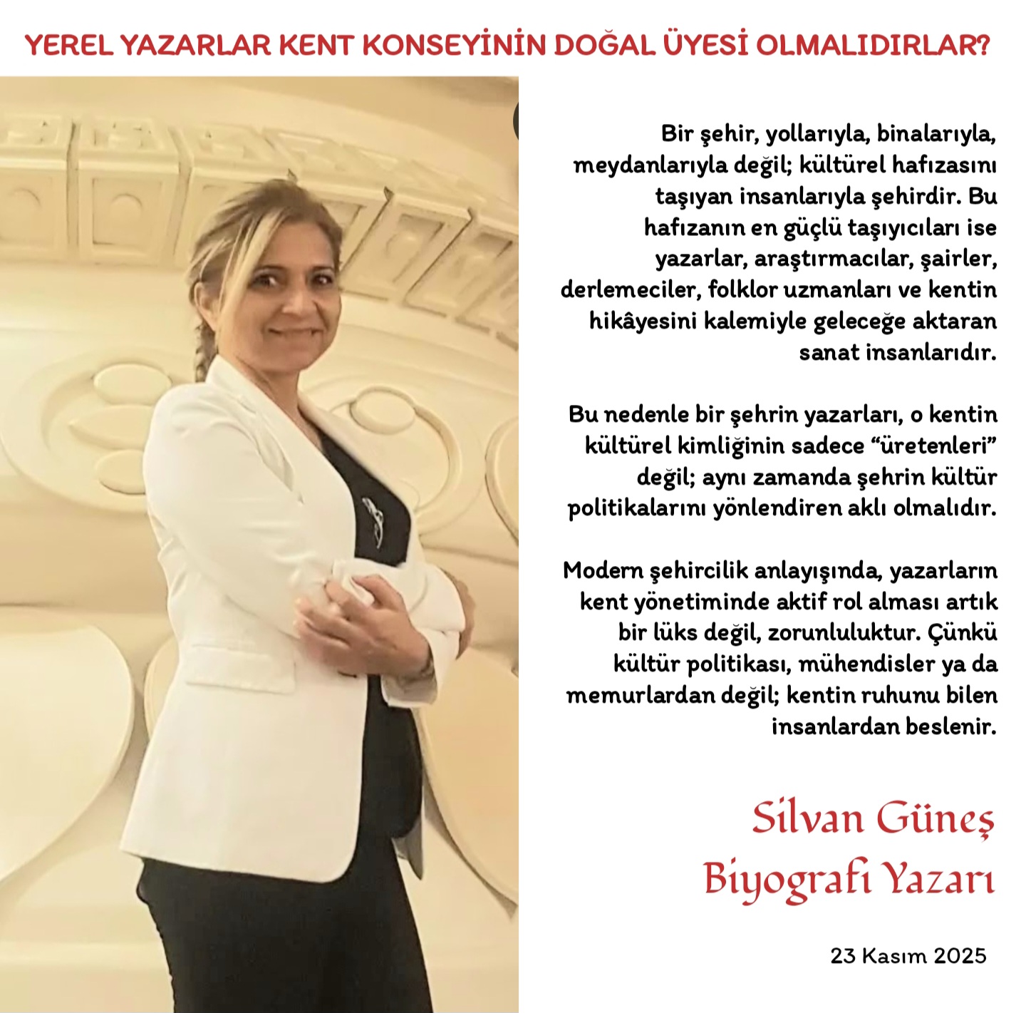 Silvan Güneş (d. 1969, Ankara), Türkiye’de biyografi yazarlığını özgün bir yöntem ve disiplinle ele alan, aynı zamanda folklor araştırmacısı, dansçı ve koreograf kimliğiyle öne çıkan çok yönlü bir kültür insanıdır. BiyografyaEğitimini Kuşadası’nda tamamladıktan sonra Ege Üniversitesi Devlet Türk Musikisi Konservatuarı Türk Halk Oyunları Bölümü’nden mezun olmuş; ardından Hoca Ahmet Yesevi Üniversitesi Yönetim ve Organizasyon Bölümü’nde yüksek lisans yapmıştır.