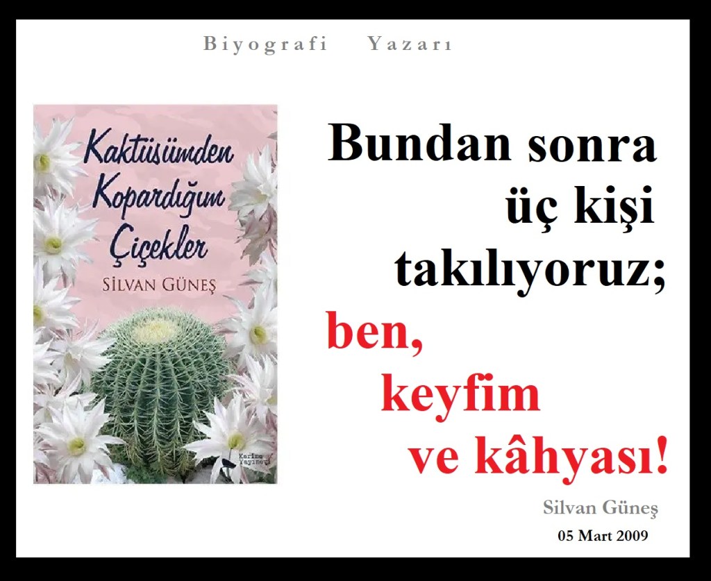 “Kaktüsümden Kopardığım Çiçekler” 2015 yılında yayımlandı. Bu esere yazdığım her cümlede sadece bana ait bir yaşanmışlık yok, bilip de yapmadığımız, geciktirdiğimiz, “bunu ben neden denemiyorum” ya da “bu şimdiye kadar neden aklıma gelmedi” diyebileceğiniz, hiç aklınıza gelmeyen ya da görseniz de meseleye öyle bakmadığınız birçok durumun, düşüncenin, farkına varmanın halleri içinde gizli. Bir kulaktan girip öteki kulaktan çıkan sözlerin bir zaman sonra kıymetlenmesş gibi yıllar sonra şaşortacak derecede rağbet göreceğine inanıyorum… Bazı eserler böyle oluyor nedense, içi boş, birileri tarafından finanse edilmiş ve bir an evvel satılıp paraya dönüştürülerek kağıt, yayınevi, editör parasının dağıtılması gereken kitaplara öyle reklamlar yapılıyor ki, vatandaş da bir şey zannedip alıyor bunları. Sonra bir bakıyor, içi boş… “Duvardaki takvimde tarihi gösteren rakamların yanına/altına yazılanları okusam da olurmuş!” diyor… İşte bunlar yüzünden aynı döneme basımı düşen nadir eserler kendini gösteremeden akıp gidiyor zamanın içinden…