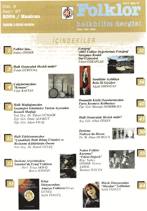 “Amasya Folkloru” adlı eserim aynı derginin bu sefer 2005 yılında 31 ve 32. Sayılarında, 33 ve 40. sayfada yer almıştır. Aksaray Üniversitesi Sosyal Bilimler Enstitüsü Türk Dili ve Edebiyat Anabilim Dalı öğrencisi Samet Doygun’un 2007’de tez ödevi olarak hazırladığı ve Türkiye’de Folklor Dergiciliği (Krolonolij İndeksi) konu alan çalışmasında, “Amasya Folkloru / Amasya İl Giyisleri” olarak yer almıştır.
