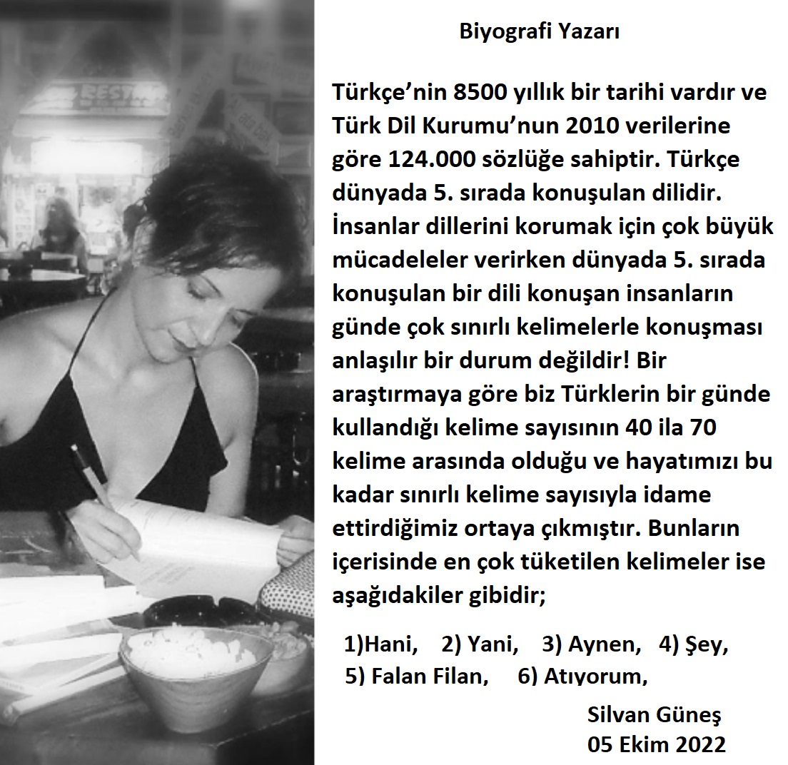 Türkçe’nin 8500 yıllık bir tarihi vardır ve Türk Dil Kurumu’nun 2010 verilerine göre 124.000 sözlüğe sahiptir. Bunun içerisinde elbette Arapça, Farsça, ve diğer yabancı dillerden sözcünler de vardır, fakat bu dünya dileri arasında olağan bir durumdur ve bazı kelimeler doğal olarak birbirine geçmiştir. Elbette bu demek değildir ki, Türkçe birçok dilden oluşmuştur! Türkçe dünyada 5. sırada konuşulan dilidir. İnsanlar dillerini korumak için çok büyük mücadeleler verirken dünyada 5. sırada konuşulan bir dili konuşan insanların günde çok sınırlı kelimelerle konuşması anlaşılır bir durum değildir! Bir araştırmaya göre biz Türklerin bir günde kullandığı kelime sayısının 40 ila 70 kelime arasında olduğu ve hayatımızı bu kadar sınırlı kelime sayısıyla idame ettirdiğimiz ortaya çıkmıştır. Bunların içerisinde en çok tüketilen kelimeler ise aşağıdakiler gibidir.