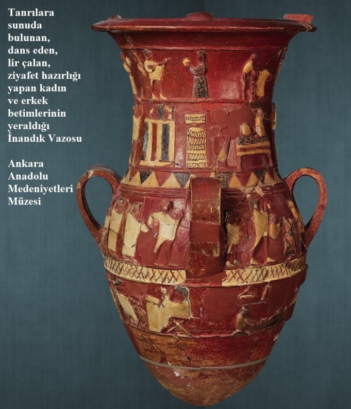 Yine Hitit toprakları içerisinde yer alan ve bugün Çankırı İlçesi’nin İnandık Köyü’nde yapılan kazılar sonucunda bir kült merkezide tüm dünyanın dikkatini çeken bir vazo bulunmuş, vazonun üzerinde yer alan kutsal tanrıların evliliklerini betimleyen ritüelde eşlik eden bir müzisyene bakacak olursanız, yine alinde gitara, bağlamaya benzeyen uzun saplı ve telli bir enstrümanı çaldığına şahit olursunuz.