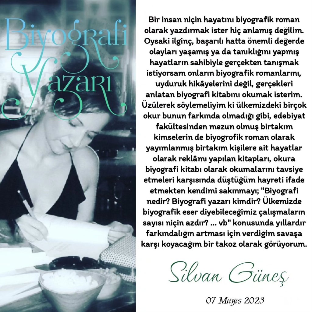 Bir insan niçin hayatını biyografik roman olarak yazdırmak ister hiç anlamış değilim. Oysaki ilginç, başarılı hatta önemli değerde olayları yaşamış ya da tanıklığını yapmış hayatların sahibiyle gerçekten tanışmak istiyorsam onların biyografik romanlarını, uyduruk hikâyelerini değil, gerçekleri anlatan biyografi kitabını okumak isterim. Üzülerek söylemeliyim ki ülkemizdeki birçok okur bunun farkında olmadığı gibi, edebiyat fakültesinden mezun olmuş birtakım kimselerin de biyogrofik roman olarak yayımlanmış birtakım kişilere ait hayatlar olarak reklâmı yapılan kitapları, okura biyografi kitabı olarak okumalarını tavsiye etmeleri karşısında düştüğüm hayreti ifade etmekten kendimi sakınmayı; “Biyografi nedir? Biyografi yazarı kimdir? Ülkemizde biyografik eser diyebileceğimiz çalışmaların sayısı niçin azdır? … vb” konusunda yıllardır farkındalığın artması için verdiğim savaşa karşı koyacağım bir takoz olarak görüyorum.