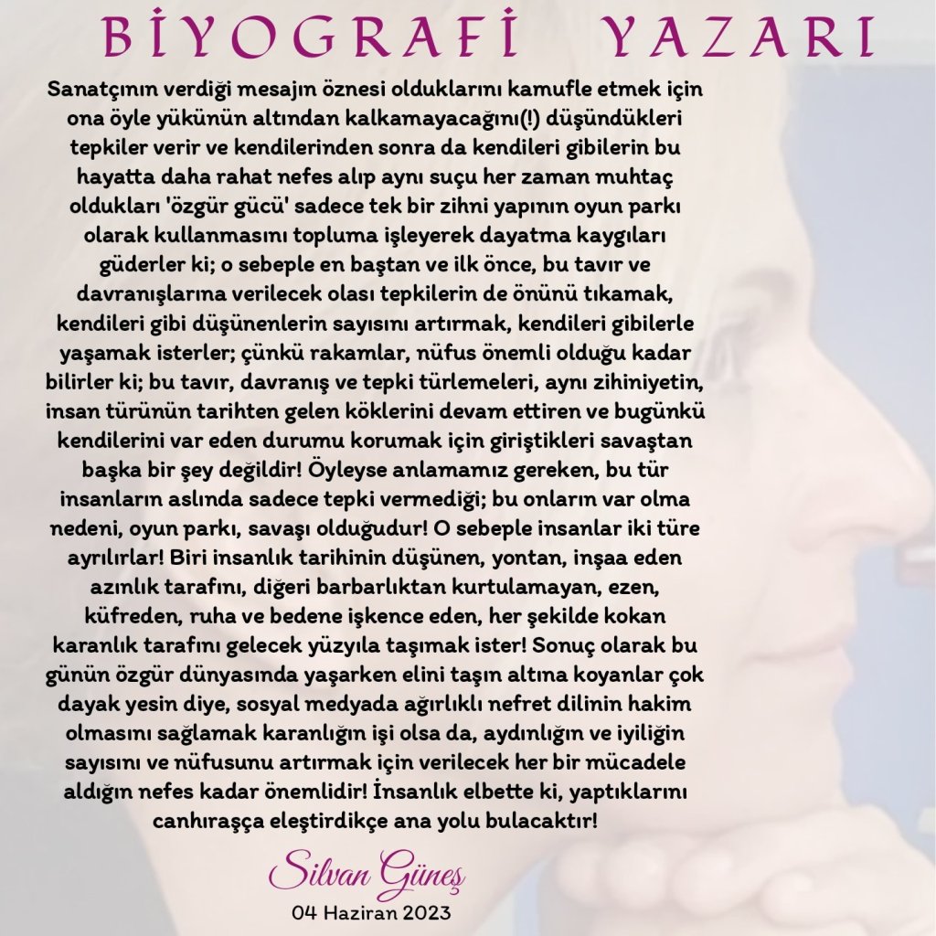 Sanatçının verdiği mesajın öznesi olduklarını kamufle etmek için ona öyle yükünün altından kalkamayacağını(!) düşündükleri tepkiler verir ve kendilerinden sonra da kendileri gibilerin bu hayatta daha rahat nefes alıp aynı suçu her zaman muhtaç oldukları ‘özgür gücü’ sadece tek bir zihni yapının oyun parkı olarak kullanmasını topluma işleyerek dayatma kaygıları güderler ki; o sebeple en baştan ve ilk önce, bu tavır ve davranışlarına verilecek olası tepkilerin de önünü tıkamak, kendileri gibi düşünenlerin sayısını artırmak, kendileri gibilerle yaşamak isterler; çünkü rakamlar, nüfus önemli olduğu kadar bilirler ki; bu tavır, davranış ve tepki türlemeleri, aynı zihiniyetin, insan türünün tarihten gelen köklerini devam ettiren ve bu günkü kendilerini var eden durumu korumak için giriştikleri savaştan başka bir şey değildir! Öyleyse anlamamız gereken, bu tür insanların aslında sadece tepki vermediği; bu onların var olma nedeni, oyun parkı, savaşı olduğudur! O sebeple insanlar iki türe ayrılırlar! Biri insanlık tarihinin düşünen, yontan, inşaa eden azınlık tarafını, diğeri barbarlıktan kurtulamayan, ezen, küfreden, ruha ve bedene işkence eden, her şekilde kokan karanlık tarafını gelecek yüzyıla taşımak ister! Sonuç olarak bugünün özgür dünyasında yaşarken elini taşın altına koyanlar çok dayak yesin diye, sosyal medyada ağırlıklı nefret dilinin hakim olmasını sağlamak karanlığın işi olsa da, aydınlığın ve iyiliğin sayısını ve nüfusunu artırmak için verilecek her bir mücadele aldığın nefes kadar önemlidir! İnsanlık elbette ki, yaptıklarını canhıraşça eleştirdikçe ana yolu bulacaktır!