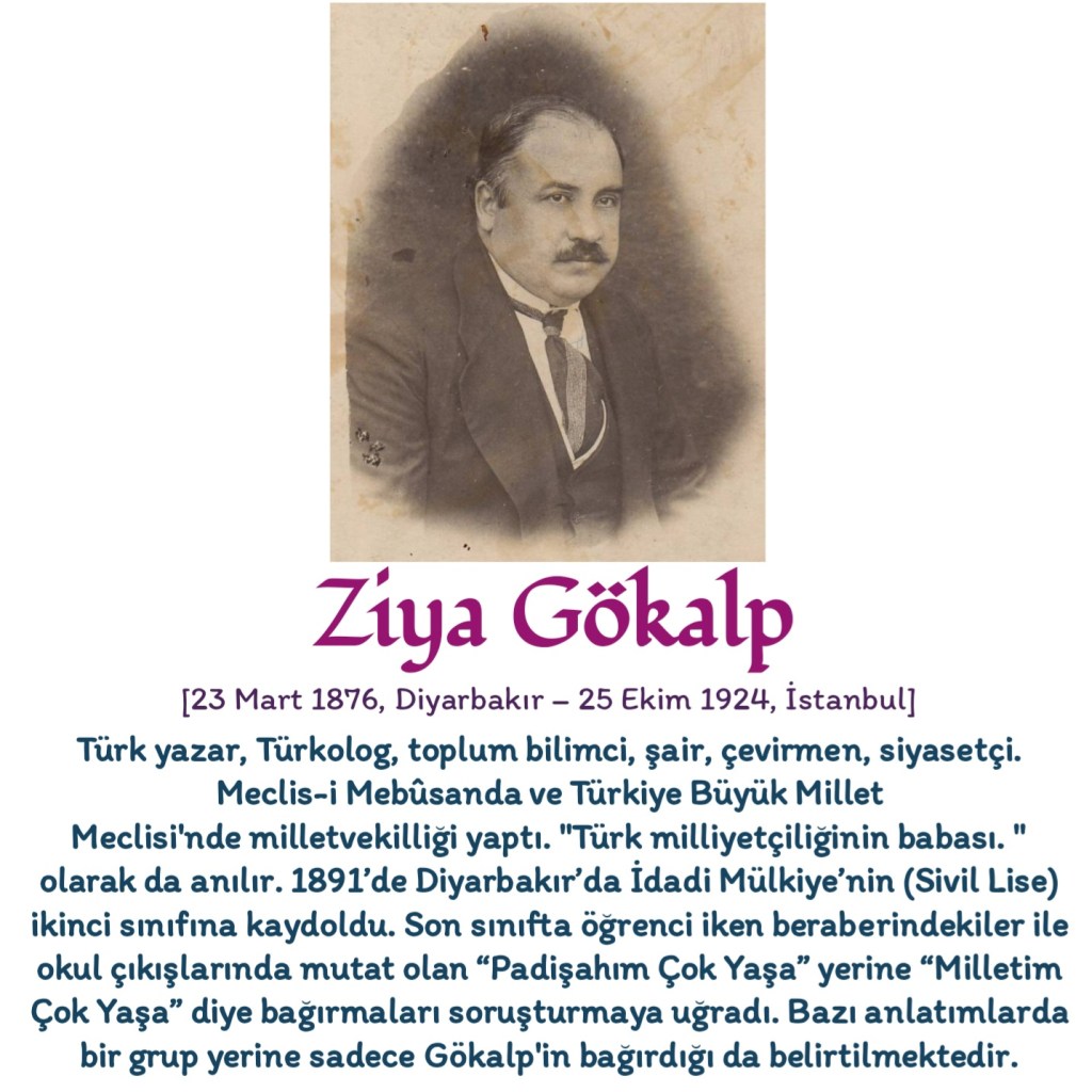 #ZiyaGökalp, Cumhuriyet dönemi Türk milliyetçiliğinin kurucularından ve en tanınmış simalarından olsa da kendisini yeterince tanımıyoruz. Ömer Seyfettin, Mustafa Kemal Atatürk ve Nihat Atsız’ı etkilediğini, 15 tane eseri olduğunu kaç kişi biliyor?