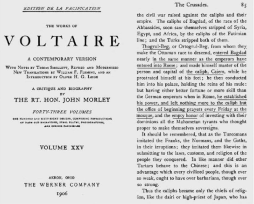 Voltaire de, Mustafa Kemal de aynı kaynaktan, büyük Fransız doğubilimci Guignes’dan öğrenmişlerdir ve her ikisinden farklı olarak da Mustafa Kemal