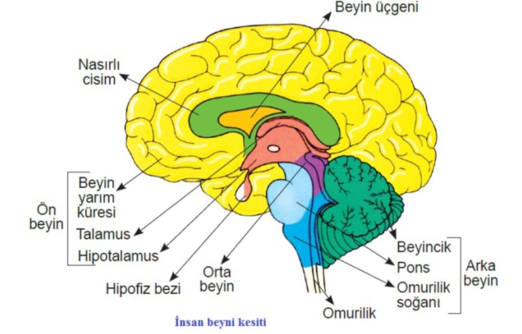 Ön beyin. insan beyninin en büyük bölümüdür. Uç beyin ve Ara beyin olmak üzere iki kısımdan meydana gelir.