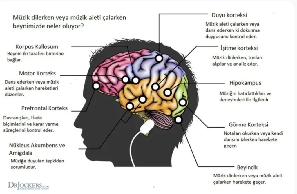 Müzik ve bir enstrüman çalmak, koroda yer alıp sözlü edebiyat gerçekleştirmek, bunun içerisinde bulunan her bir çocuğumuzun sağ, sol ve başka hiç bir dersin aktif edemeyeceği ön lopu aktif hale getireceği gibi, boynun gerisinde yer alan sağ ve sol loplarda daha çok anlama, algılama ile yer açtıkça, tepe lopu da ön görü, anlayış, aydınlanma, kendini gerçekleştirme, kendini doğru ifade edebilme vb sosyal alanda kendini gösterir. Üç yıl boyunca çocuklarımıza flüt çıldırmamın ve onların mutlaka bir çalgı ile buluşmalarını istememin sebebi, aslında müziğin de ötesinde çocuklarımıza her hafta bir saat de olsa bir zekâ geliştirme egzersizleridir ki; bu şekilde beynini çok farklı şekilde işlemesini sağlayan çocuk, anlamadığı matematiği, sosyali, fen’i, türkçeyi, hafızasında tutamadığı yabancı kelimeleri daha iyi anlayacak ve gittikçe algı seviyesi yükseldikçe başarı seviyesi daha da artacaktır. Ve zaman içerisinde her derste başardığını gördükçe kendine olan öz güveni daha da artacak ve bu haliyle ders notlarını da etkileyecektir.