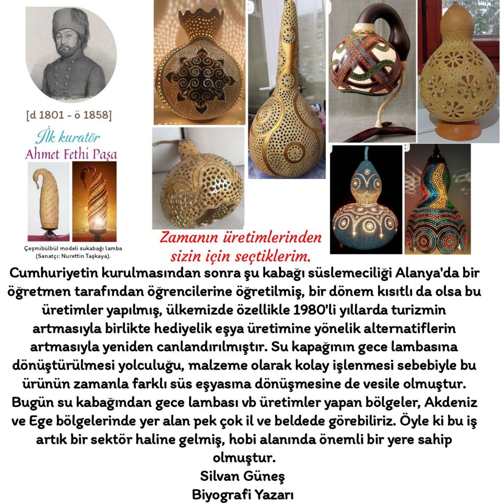Cumhuriyetin kurulmasından sonra şu kabağı süslemeciliği Alanya’da bir öğretmen tarafından öğrencilerine öğretilmiş, bir dönem kısıtlı da olsa bu üretimler yapılmış, ülkemizde özellikle 1980’li yıllarda turizmin artmasıyla birlikte hediyelik eşya üretimine yönelik alternatiflerin artmasıyla yeniden canlandırılmıştır. Su kapağının gece lambasına dönüştürülmesi yolculuğu, malzeme olarak kolay işlenmesi sebebiyle bu ürünün zamanla farklı süs eşyasına dönüşmesine de vesile olmuştur. Bugün su kabağından gece lambası vb üretimler yapan bölgeler, Akdeniz ve Ege bölgelerinde yer alan pek çok il ve beldede görebiliriz. Öyle ki bu iş artık bir sektör haline gelmiş, hobi alanında önemli bir yere sahip olmuştur.