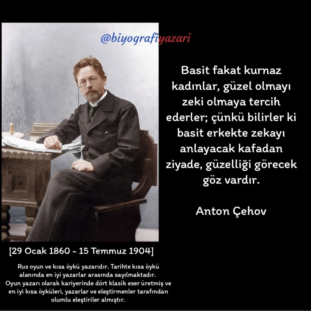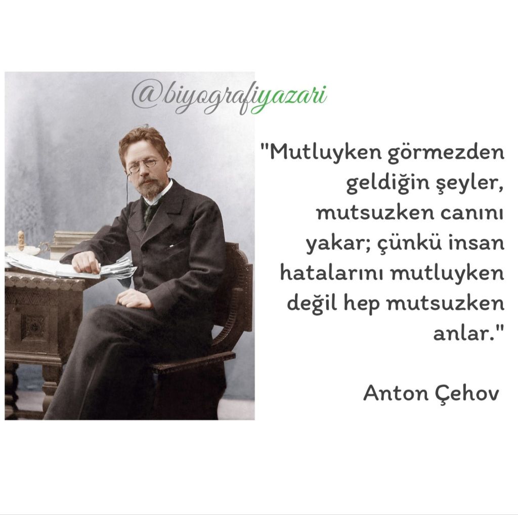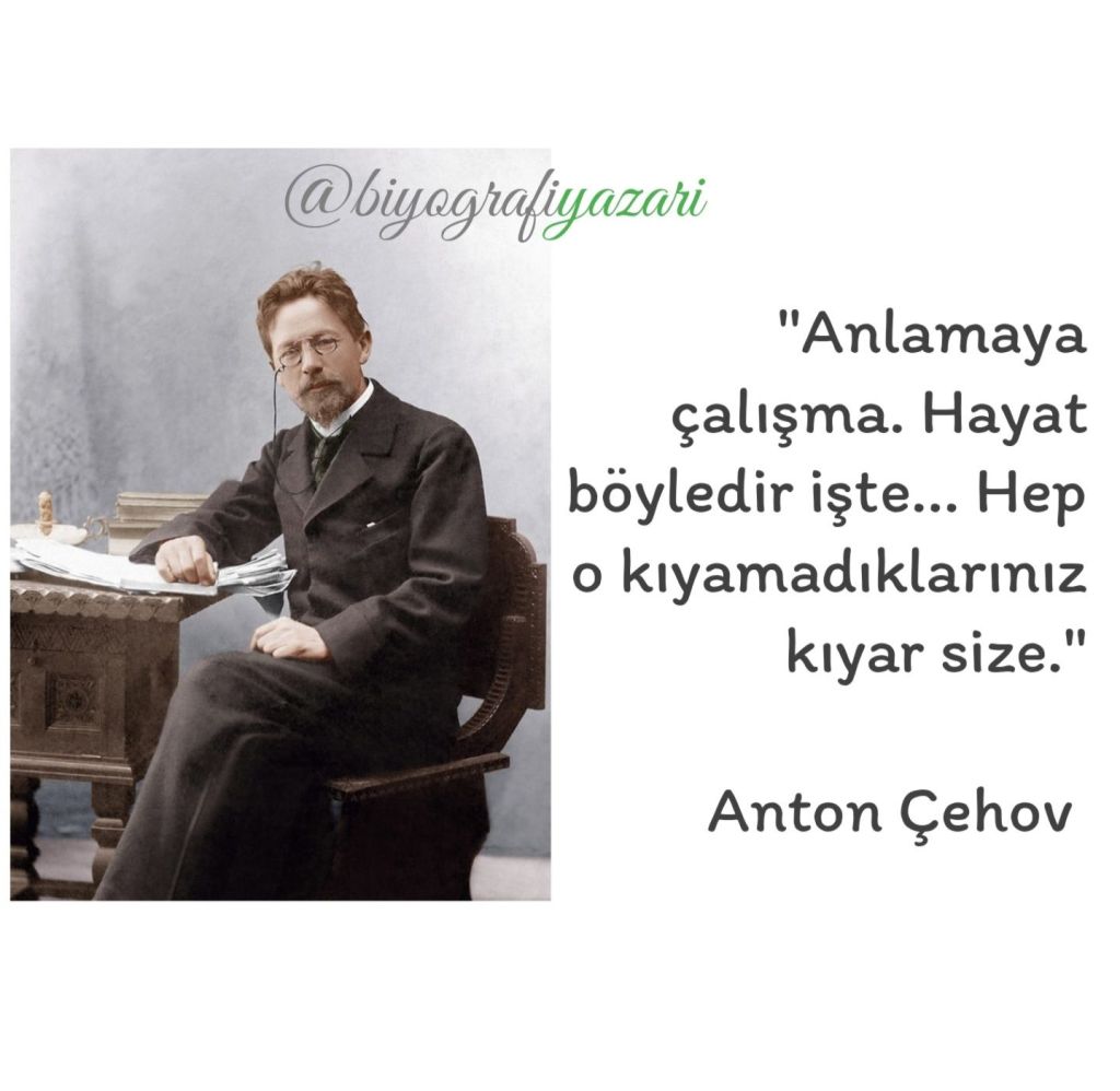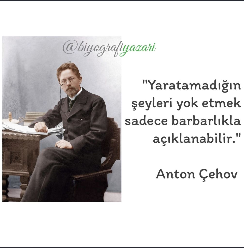 Çehov’un ilk paylaştığım sözünü bundan 40 yıl önce lise yıllarımda duymuştum. Tıpkı buradaki kalıpta olduğu gibi, her şeye uyarlayıp sarfedebileceğimiz bir cümle yapısının geçerliliğini dünya döndükçe koruyacağını bilmenizde şaşılacak bir şey yok!