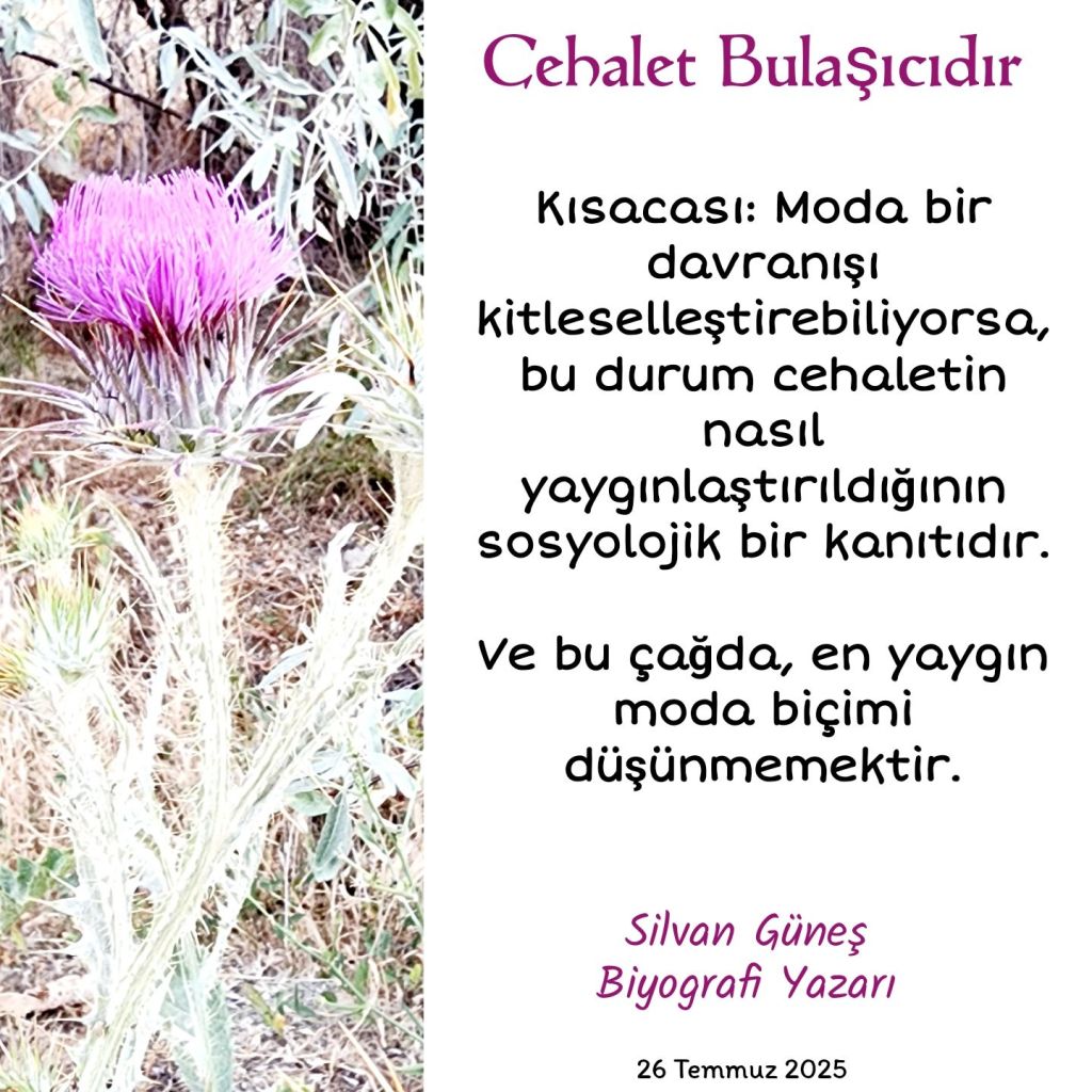 Kısacası: Moda bir davranışı kitleselleştirebiliyorsa, bu durum cehaletin nasıl yaygınlaştırıldığının sosyolojik bir kanıtıdır.