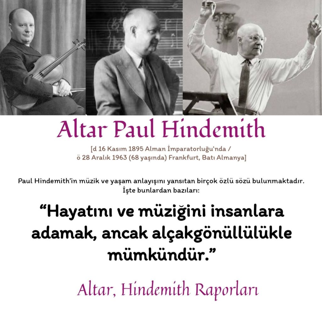 Hindemith, Atatürk’ün daveti üzerine Türkiye’ye gelerek Ankara Devlet Konservatuvarı’nın kuruluşunda aktif rol oynadı. 1935–1938 yılları arasında aralıklı ziyaretlerle konservatuvarın eğitim programlarını modern standartlara uyarladı ve Batı müziği ile Türk müziğini dengeli bir şekilde birleştiren müfredat oluşturdu. Hazırladığı raporlar, müzik eğitiminin sistematikleşmesine ve çağdaşlaşmasına zemin hazırladı.