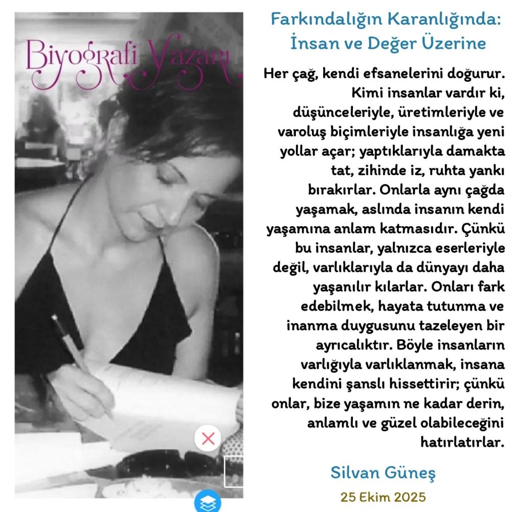 Her çağ, kendi efsanelerini doğurur. Kimi insanlar vardır ki, düşünceleriyle, üretimleriyle ve varoluş biçimleriyle insanlığa yeni yollar açar; yaptıklarıyla damakta tat, zihinde iz, ruhta yankı bırakırlar. Onlarla aynı çağda yaşamak, aslında insanın kendi yaşamına anlam katmasıdır. Çünkü bu insanlar, yalnızca eserleriyle değil, varlıklarıyla da dünyayı daha yaşanılır kılarlar. Onları fark edebilmek, hayata tutunma ve inanma duygusunu tazeleyen bir ayrıcalıktır. Böyle insanların varlığıyla varlıklanmak, insana kendini şanslı hissettirir; çünkü onlar, bize yaşamın ne kadar derin, anlamlı ve güzel olabileceğini hatırlatırlar.