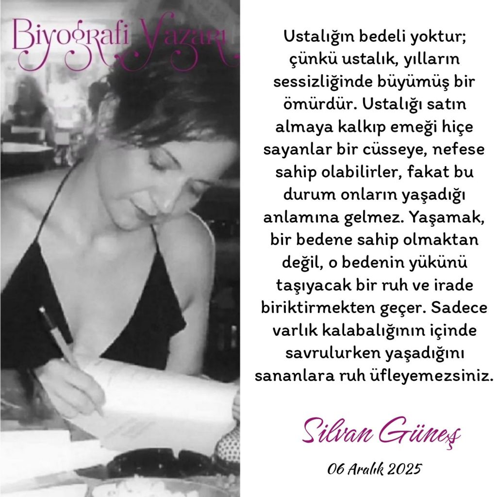 Bir sanatçı restorana yemeğe gider ve garson sanatçıyı tanır. Kendisinden bir peçeteye kendisi için bir karikatür çizmesini ister. Sanatçı bir şeyler çizer ve garsona uzatırken çizdiği karikatürün bedelini ister. Garson şaşırır ve peçeteye çizdiğini söyler. Sanatçı da peçetenin üstüne çizdiği o karikatürü çizebilmek için ömrünü verdiğini söyler. Hayat hep böyle değil mi, herkes başarıyı alkışlarken ona sahip olmayı ucuza kapatmak ister. Ve bu durum, aslında başarıya olan bakış açımızı ortaya koyar. Bizim üstümüzde bıraktığı duyguyu severiz, fakat o duygunun, değerin ortaya çıkmasına vesile olan sanatçının, buna vesile olmak için ömrünü harcadığını ve kim bilir ne ağır bedeller ödediğini hesaba katmaz, bunun karşılığını almaya kalktığında da sanatını hiçe sayıp, sanatı icra ettiği ürünün değersizliği üzerinden sanatına değer biçmeye yelteniriz. Ve işte bu hareket, insanın bencil, düşüncesiz ve eğitilemeyen aklının karşısındakine verdiği küstahlığa eş cevabıyla yerlerde sürünür. Ustalığın bedeli yoktur; çünkü ustalık, yılların sessizliğinde büyümüş bir ömürdür. Ustalığı satın almaya kalkıp emeği hiçe sayanlar bir cüsseye, nefese sahip olabilirler, fakat bu durum onların yaşadığı anlamına gelmez. Yaşamak, bir bedene sahip olmaktan değil, o bedenin yükünü taşıyacak bir ruh ve irade biriktirmekten geçer. Sadece varlık kalabalığının içinde savrulurken yaşadığını sananlara ruh üfleyemezsiniz.