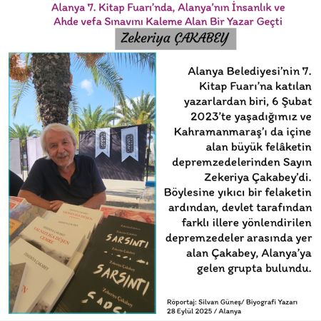 Alanya 7. Kitap Fuarı’nda, Alanya’nın İnsanlık ve Ahde vefa Sınavını Kaleme Alan Bir Yazar Geçti: Zekeriya Çakabey